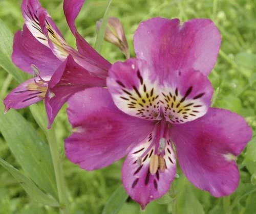 Spectaculaire et généreuse, la floraison de l’alstroemère Montsoreau COV Turcalreau s’étale de juin jusqu’aux gelées quasiment sans interruption ! Groupées en bouquets, ses fleurs à l’aspect exotique s’habillent d’un ton rose violine profond et nuancé, marquées de macules contrastées blanc crème et régulièrement striées de brun noir au centre.
