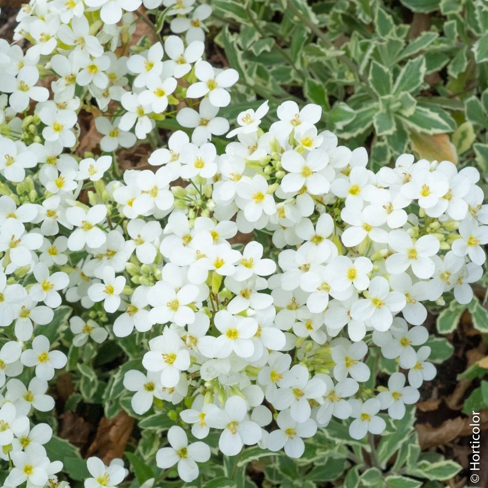 Un vrai petit bijou ! Décorative toute l’année grâce à son feuillage persistant, l’Arabis ferdinandii-coburgii ‘Variegata’, ou arabette panachée, éclaire bordures, rocailles, murets, dallages de son feuillage panaché de blanc crème et de ses graciles fleurs printanières blanches. Très facile à réussir, cette petite plante couvre-sol fait aussi merveille en balconnières, auges et bacs en compagnie de fleurs saisonnières ou vivaces.