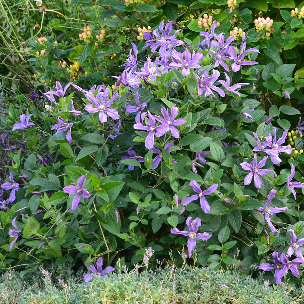 Originale, la clématite SAPHYRA ® Estrella ‘Cleminov27’, création française, est étonnante à plus d’un titre : d’abord par sa floraison estivale généreuse et prolongée, puis par ses petites fleurs étoilées pleines de charme et enfin par sa culture très facile. Cette sélection innovante issue de Clematis integrifolia offre de nombreuses fleurs régulièrement réparties sur une plante couvre-sol, compacte et vigoureuse, très rustique et indemne de maladies. En pleine terre comme en bac, elle assure le spectacle sans entretien particulier : elle est donc idéale pour les jardiniers débutants !