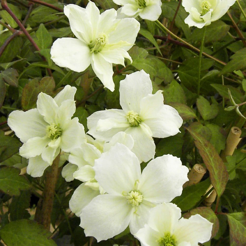 La clématite montana STARLET ® White Perfume se distingue par sa floraison précoce d’une incroyable opulence. Tout au long des tiges de l’année précédente naissent en avril-mai ses fleurs généralement groupées en bouquets de 2 à 5 boutons.
