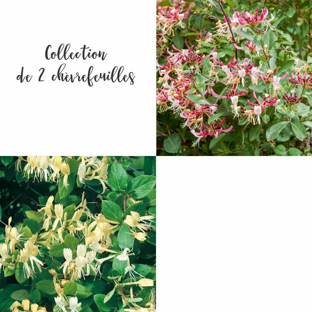 Une collection de deux chèvrefeuilles pour un jardin très parfumé ! Floraison de juin à septembre.- 1 Chèvrefeuille Japonica Chinensis, bicolore rouge et jaune- 1 Chèvrefeuille Japonica Halliana, bicolore blanc et jaune