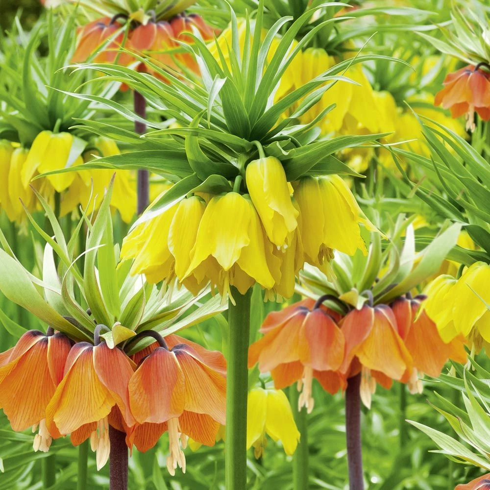 Les couronnes impériales (fritillaires) sont des plantes majestueuses avec leurs hautes tiges surmontées d’un bouquet de grosses fleurs pendantes. Ce sont des plantes très décoratives en massifs, plate-bandes, ou en groupes isolés. Plantez-les en sols bien drainés, à exposition ensoleillée, elles sont propageront ensuite d’elles-mêmes. Rabattez les tiges florales après la floraison.