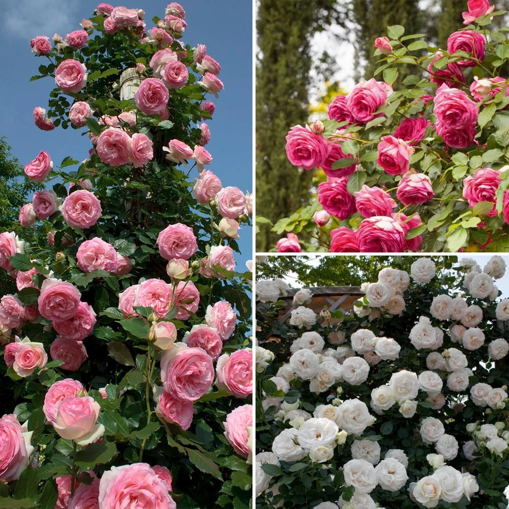 Cet ensemble de rosiers grimpants coordonnés est composé de :
