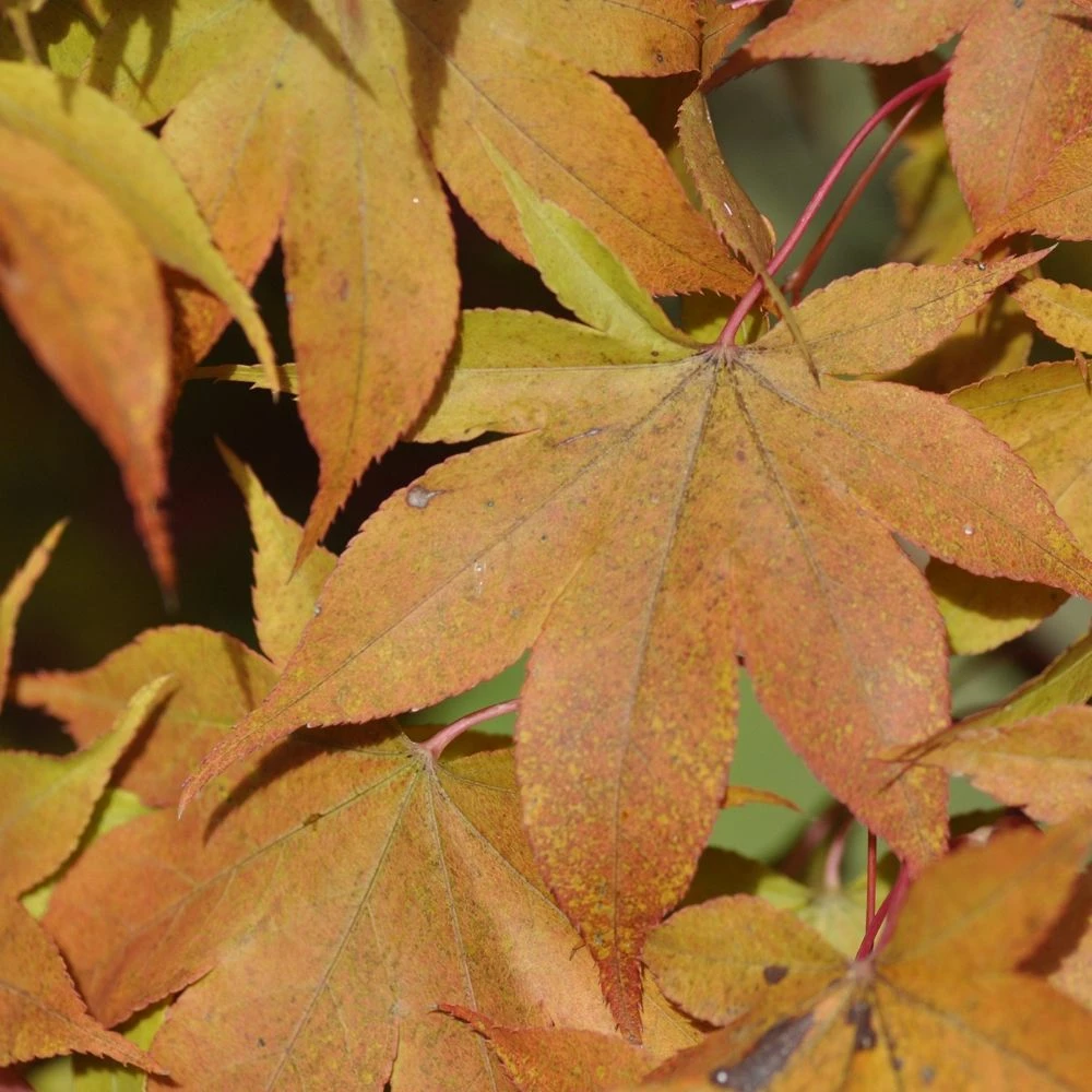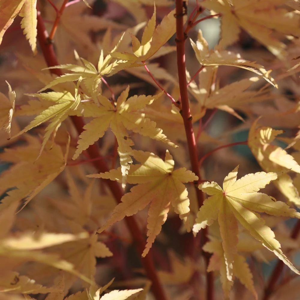 Le feuillage de l’ érable du Japon Ozakazuki est vert olive au printemps et en été. Dès le début de l’automne il devient jaune, puis bronze et pour finir rouge feu en novembre.