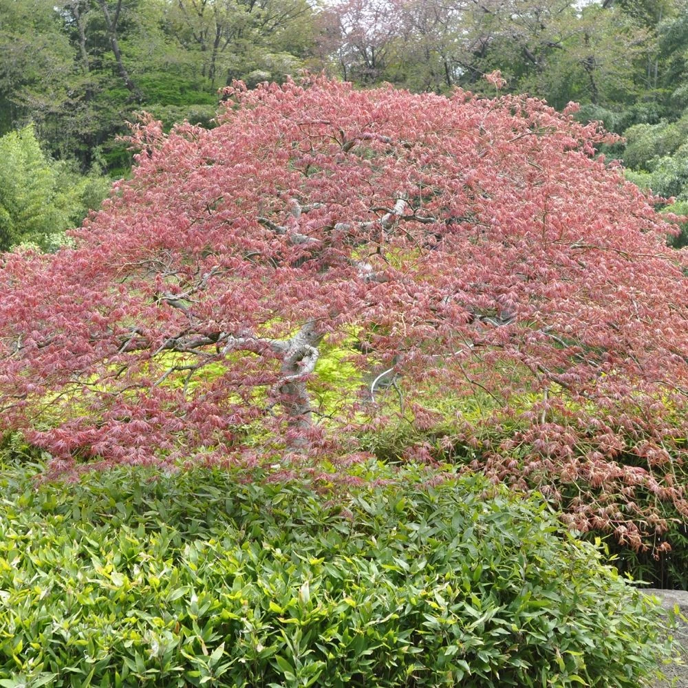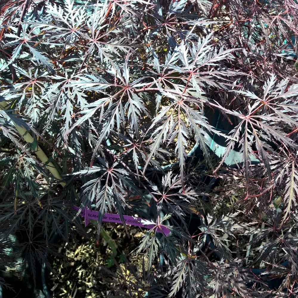 Le feuillage de l’érable du Japon Crimson Queen est fin très découpé, de couleur rouge clair au printemps et rouge pourpre en été. En automne, il prend une couleur rouge orangé remarquable.
