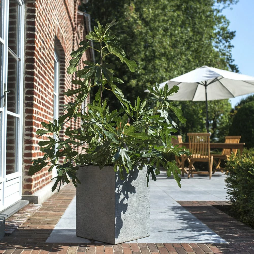 Seul figuier réellement nain, le figuier FIGALITY ® convient idéalement à la plantation en grand pot. Choisissez un bac d’environ 45/50 cm de profondeur au fond duquel vous disposerez une couche de drainage (gravier, pouzzolane, billes d’argile expansée).