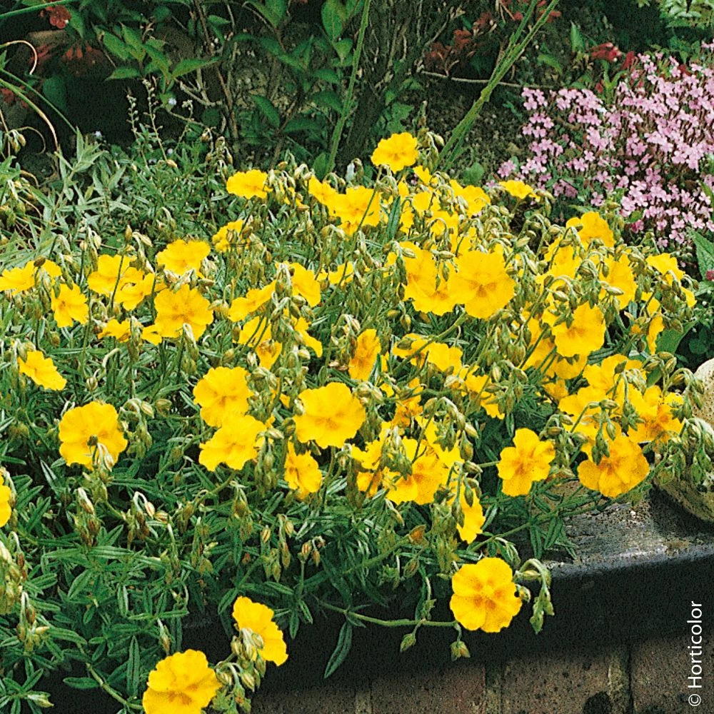Typique des prairies sèches et des garrigues, l’Helianthemum X ‘Ben Fhada’ ou hélianthème hybride ‘Ben Fhada’ forme un sous-arbrisseau tapissant couvert de fleurs jaune vif entre mai et juillet. Facile à cultiver en sol bien drainé et au soleil, plantez ce petit bijou en rocaille, auge, garniture de dallage et même potées fleuries.