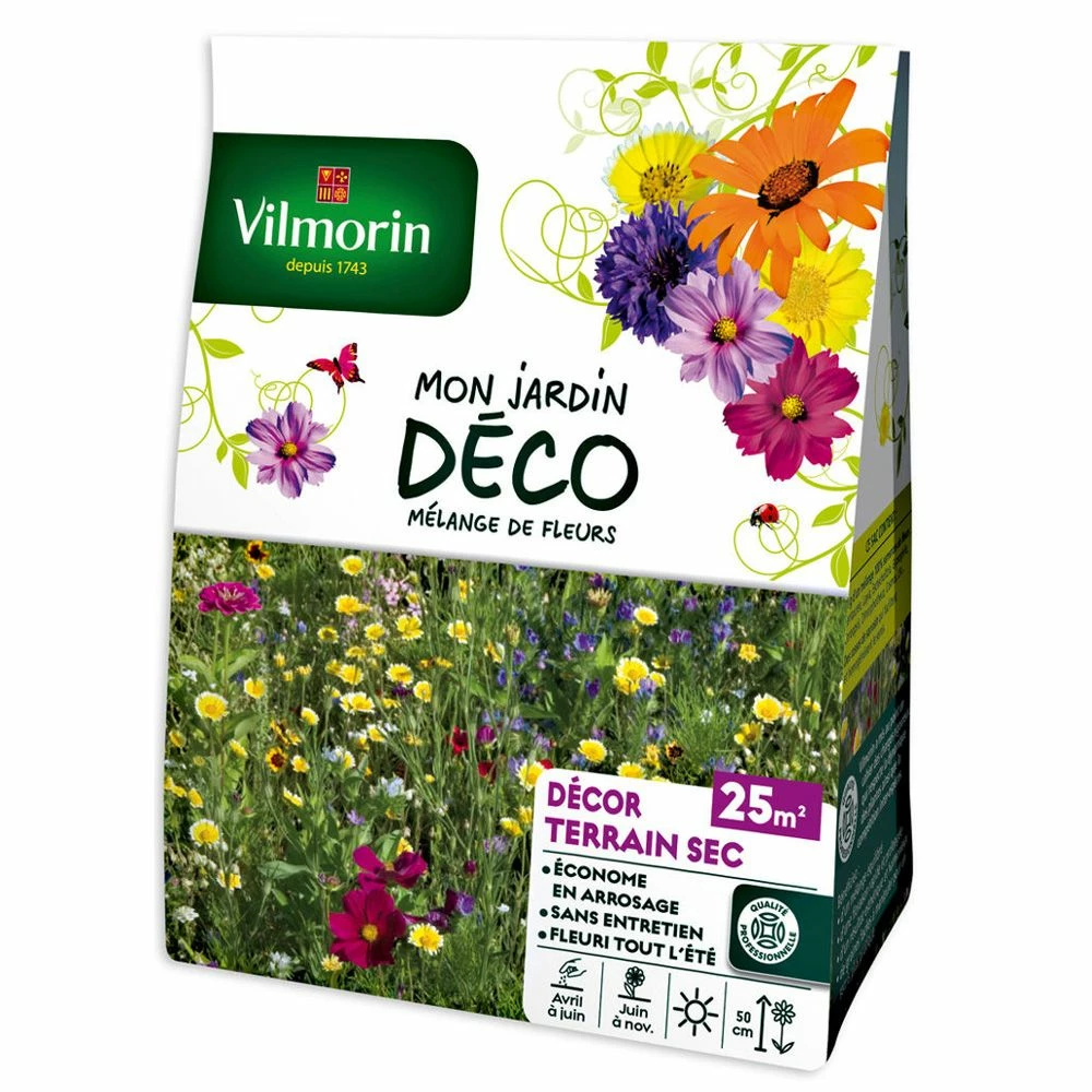 Ce mélange est peu gourmand en eau grâce à ses fleurs annuelles rustiques susceptibles de résister à des épisodes de sécheresse raisonnable. Facile à réussir en sol ordinaire, la Jachère fleurie Terrain sec se sème de mars à juin pour fleurir de juin aux gelées.