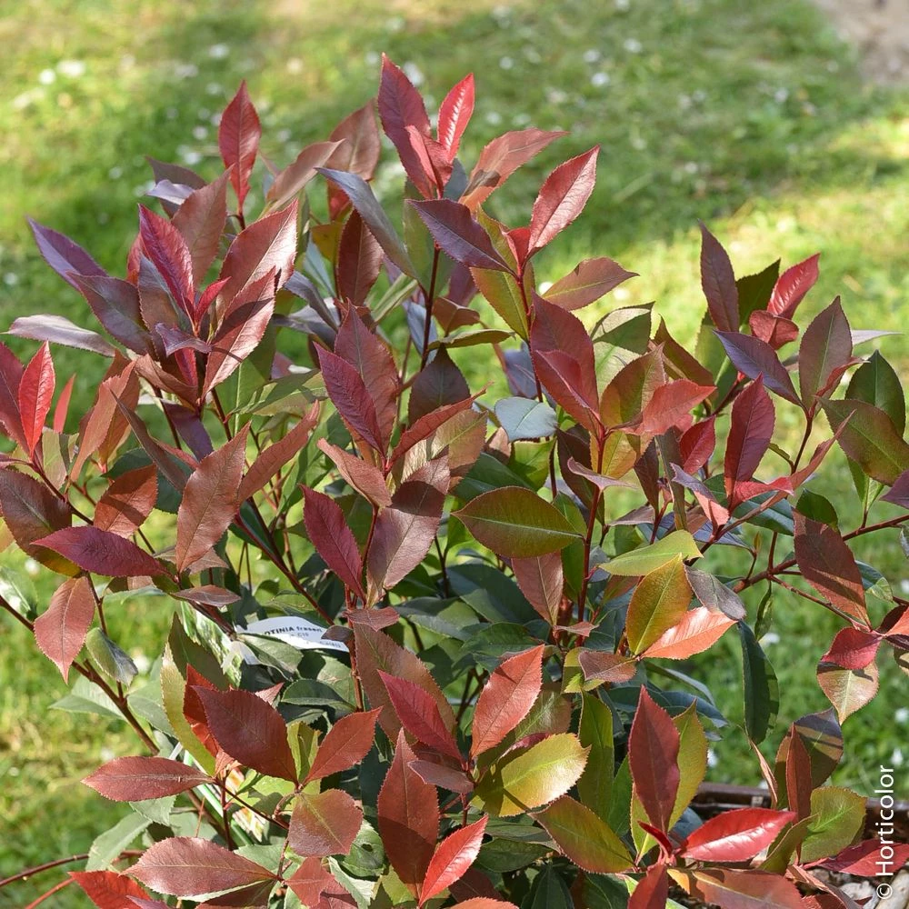 Jeune feuillage rouge intense lumineux ! Amélioration du célèbre Photinia ‘Red Robin’, le Photinia X fraseri ‘Carré Rouge’ est plus compact, plus dense, avec un feuillage persistant plus intensément teinté de rouge sur les jeunes pousses. Cet arbuste facile, peu exigeant et d’entretien limité est idéal en haies taillées ou haies mixtes variées, en petits jardins taillé en boule ou en cône, et aussi en grands bacs pour créer des brises-vue sur les terrasses et balcons.