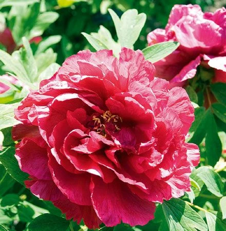 La pivoine arbustive Kao est une magnifique plante au feuillage caduc. Fleur double énorme et très dense de 20 à 23 cm de diamètre, légèrement parfumée, coloris rouge rosé, nuancé plus clair en s’épanouissant. Joli bouton, petit coeur quelquefois visible. Floraison mai-juin. A utiliser en groupes ou isolé à exposition ensoleillée ou demi-ombragée. Hauteur adulte : 1,20 m : Diamètre : 1 m.