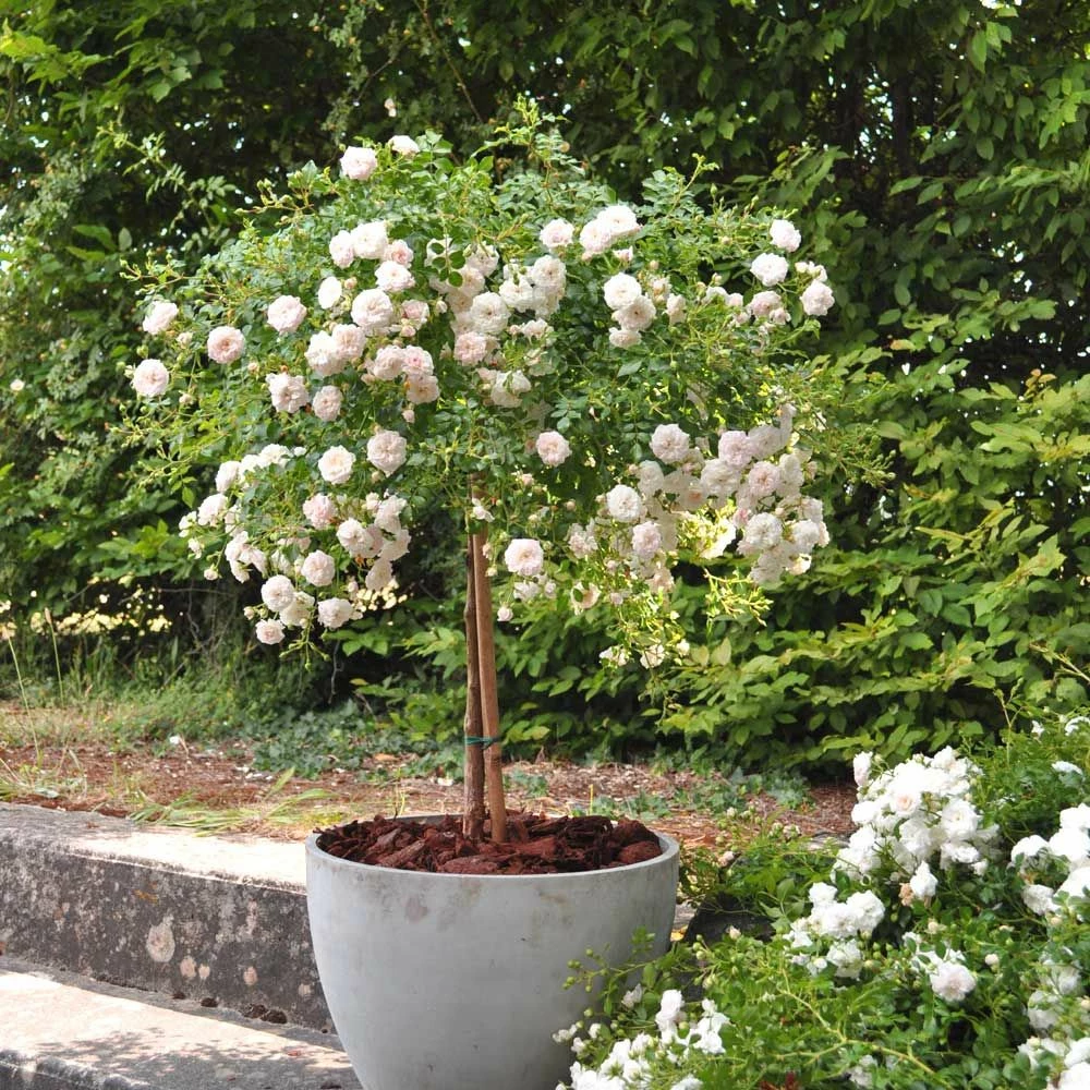 Un rosier sur tige idéal pour les petits espaces, terrasses et balcons ! Le rosier demi-tige semi-retombant Icy DRIFT ® Meipicdevoj est greffé sur une tige de 60/80 cm.