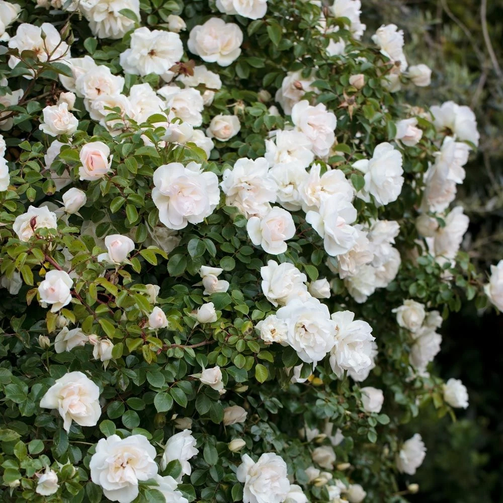 Si, sur la masse de roses, l’effet d’ensemble paraît blanc, de près, chaque pétale s’enrichit de nuances ivoires, nacrées et légèrement rosées, en fonction des conditions climatiques. Ces tonalités subtiles ajoutent aux roses un charme tout romantique…