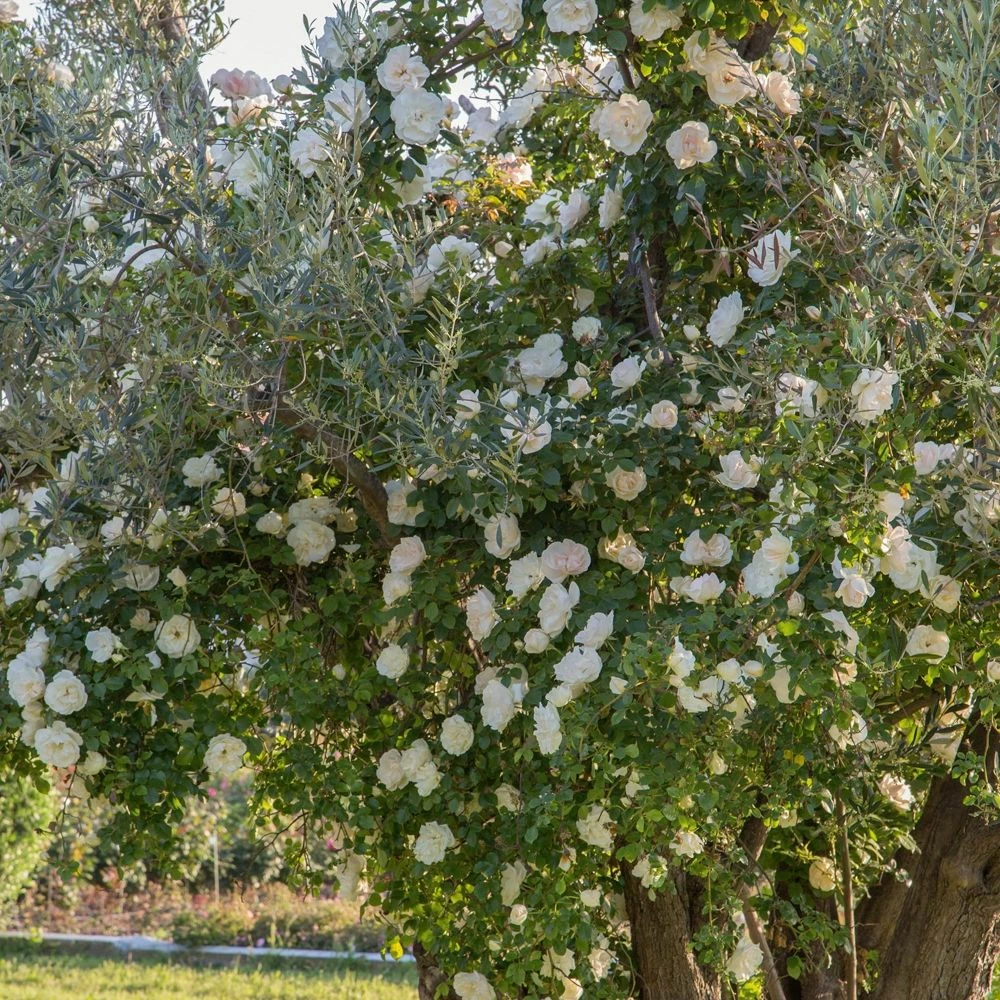 Véritable coup de cœur d’Alain Meilland, le rosier grimpant liane JEAN HONORE MUS ® meibeljenb figure en bonne place dans son jardin, grimpant dans un vieil olivier… Cette variété est parfois nommée LOOPING ® ou Perle CRESCENDO ®.