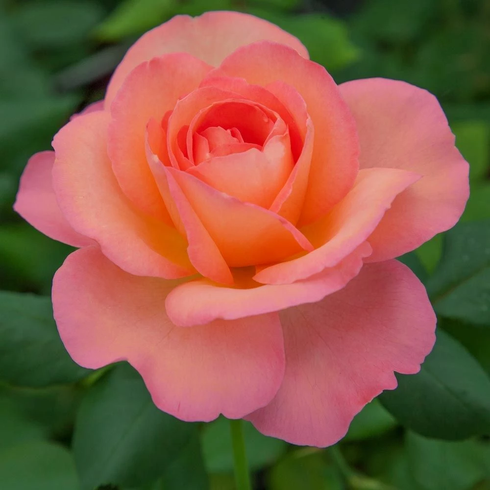Ce rosier généreux fleurit presque continuellement sur un tempo très régulier dès le mois de juin et jusqu’aux gelées. Les roses déploient en corolles de 11 cm de diamètre leurs 40 à 45 pétales arrondis au coloris orange ocré nuancé et largement marginé de rose cuivré. Solitaires sur leur tige, les roses sont idéales en bouquet et diffusent un léger parfum.