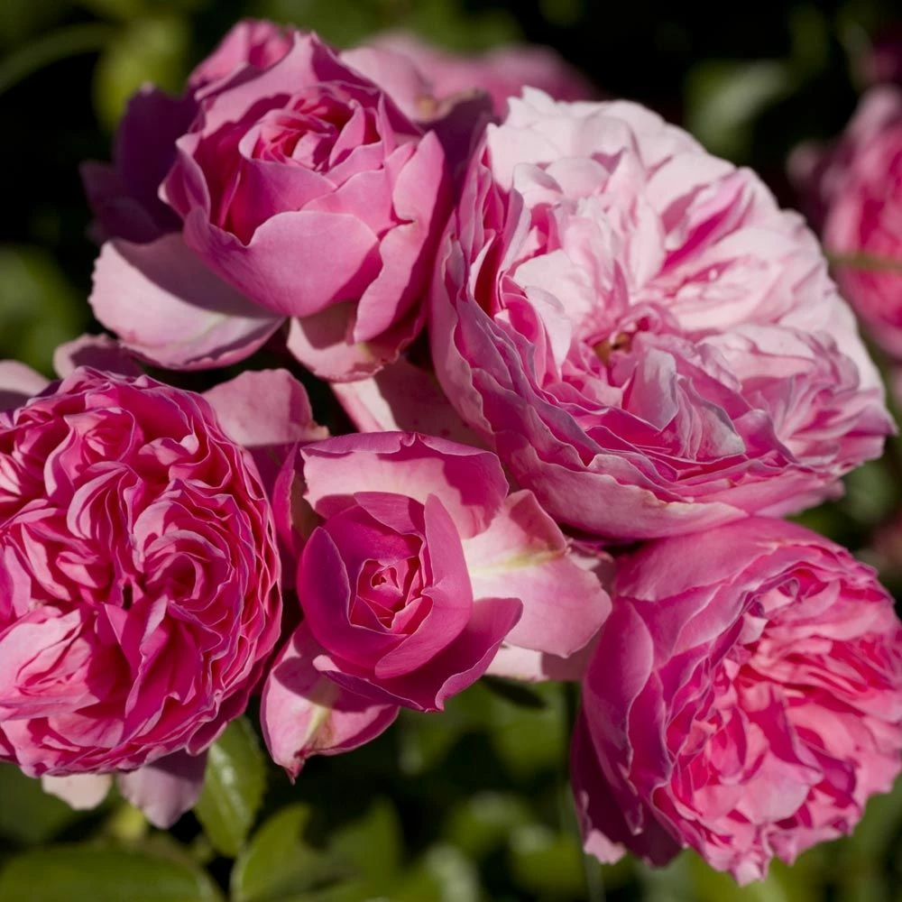 Ses roses naissent en bouquets légers de 2 à 5 boutons dodus qui s’épanouissent progressivement en une fleur en coupe d’environ 8 cm de diamètre. Ses 75 à 80 pétales se serrent en quartiers chiffonnés à la manière des roses antiques.