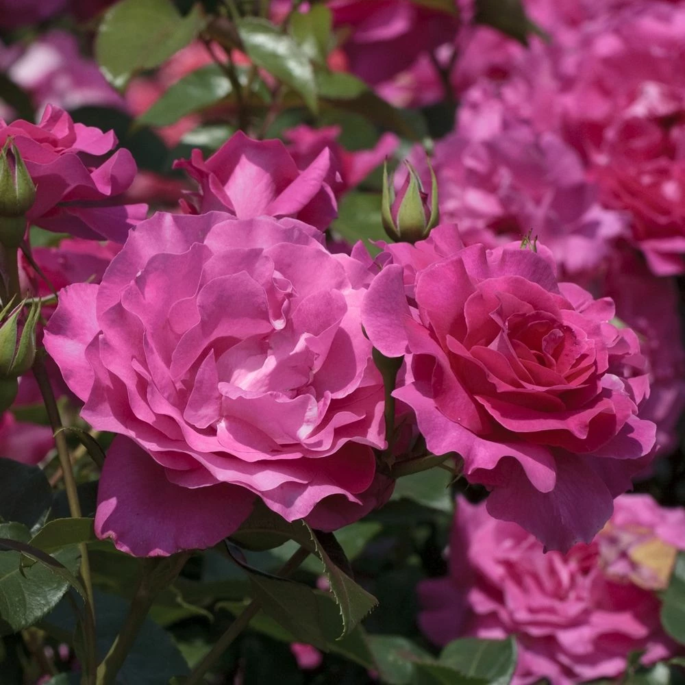 Grand classique de Meilland au succès toujours actuel, le rosier MANOU MEILLAND ® Meitulimon enchante les jardiniers depuis 1979 ! Il faut dire que ses roses élégantes rose Bengale, plutôt grandes pour ce type de rosier, sont parfumées et se renouvellent régulièrement sur un buisson compact et résistant.