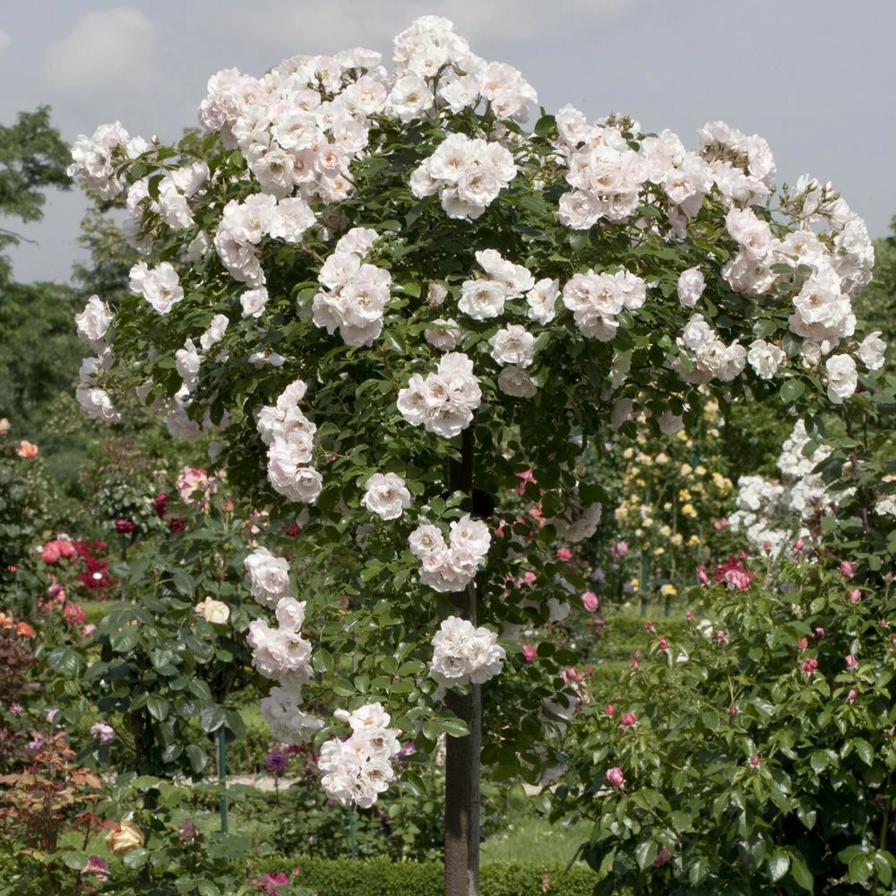 Le rosier pleureur Ice MEILLANDECOR ® possède un harmonieux contraste entre le blanc pur de la floraison et le vert brillant du feuillage qui est résistant aux maladies. Ce rosier est remontant pour une floraison renouvelée jusqu’aux gelées.