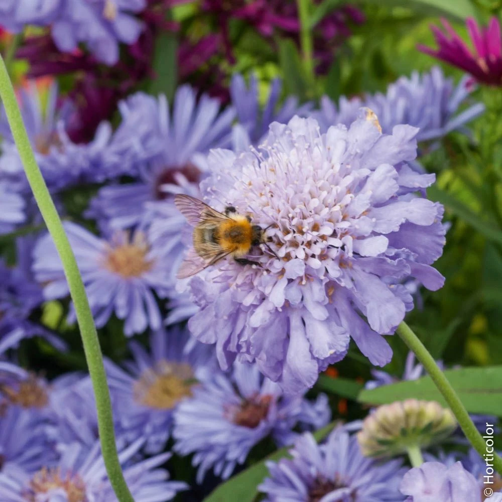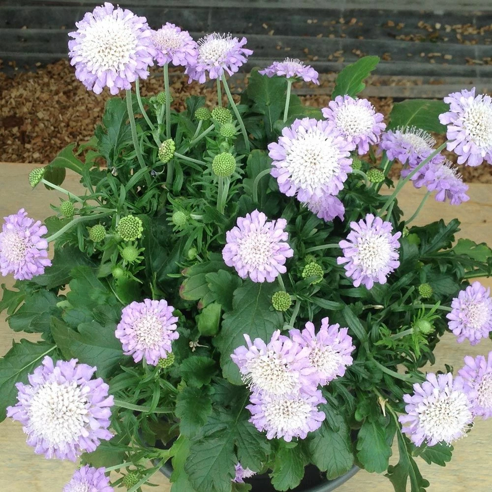 Les fleurs bleu violacé de la Scabieuse Butterfly Blue attirent les papillons. Une plante exceptionnelle faisant partie des meilleures vivaces de ce genre car elle est rustique, demande peu d’entretien, et possède une longue floraison d’avril à octobre. Cette scabieuse a un feuillage persistant et un port très compact, qui forme un tapis régulier en bordure ou rocaille et même en jardinière ou en pot. Hauteur adulte 30 cm. Espacer de 30 cm ou 9/m².