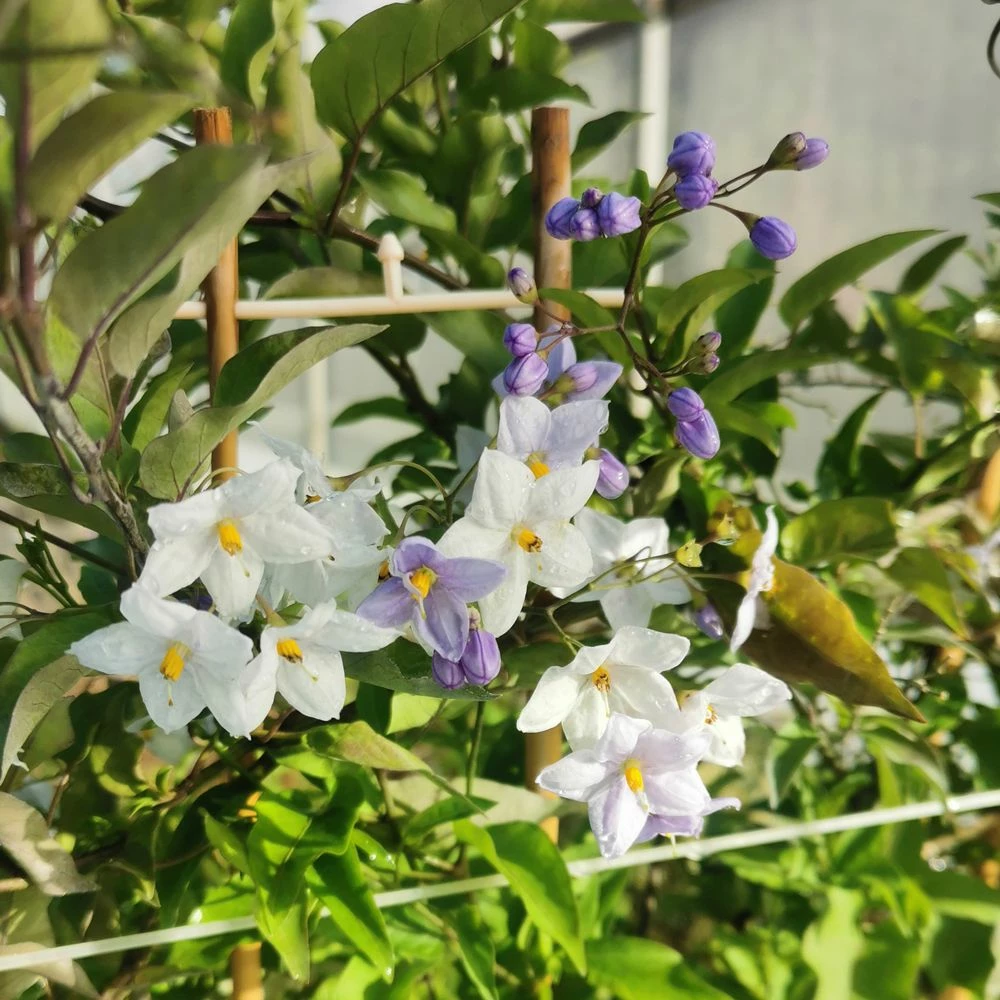 Le saviez-vous ? Originaire d’Amérique du Sud (brésil, Argentine, Equateur), le Solanum jasminoïdes, récemment renommé Solanum laxum, appartient à la même famille que la pomme de terre et la tomate !