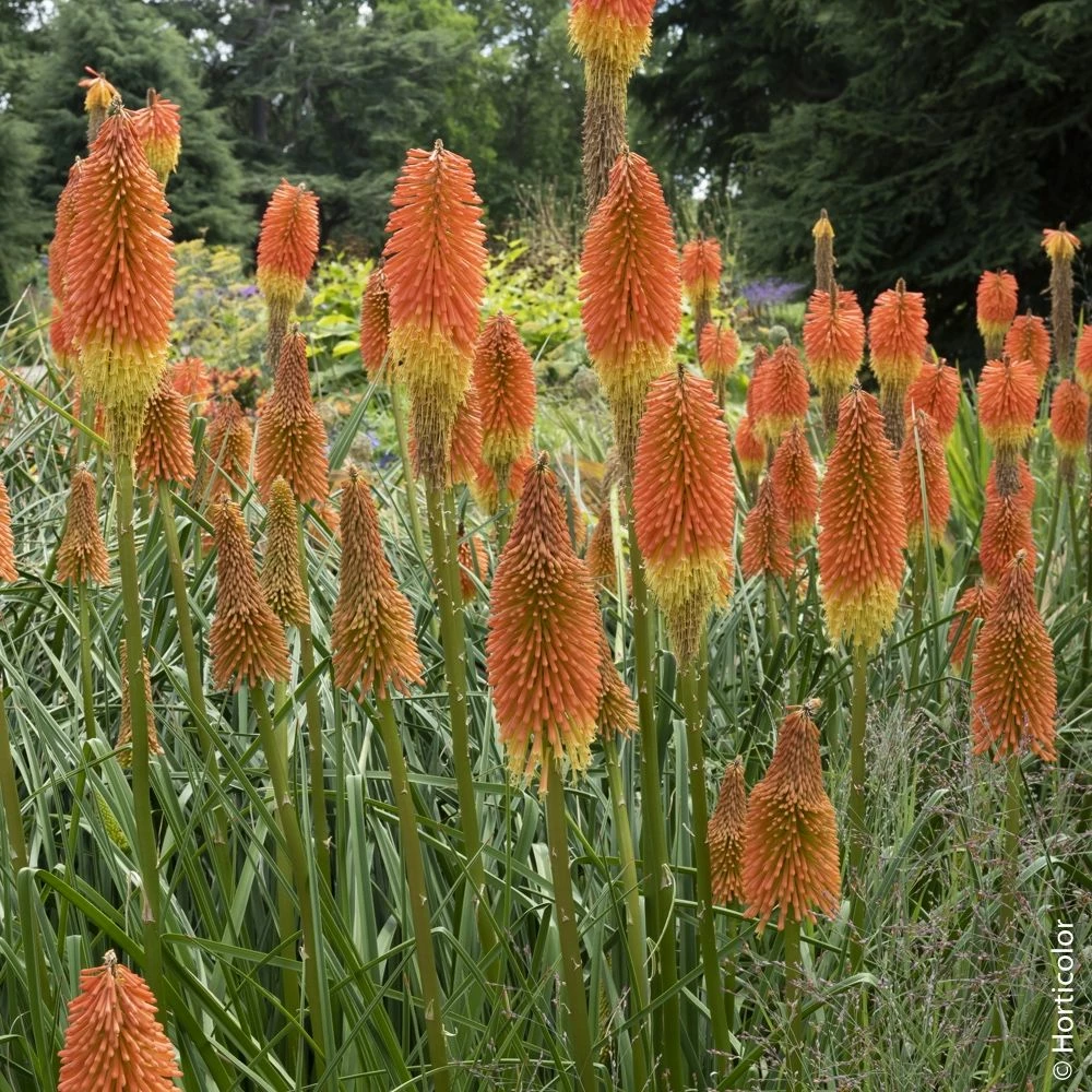 C’est en groupes et en massifs que le Tritoma uvaria est le plus spectaculaire ! Il apporte exotisme et chaleur aux compositions à base de graminées et plantes vivaces dans les tons chauds comme les gaillardes, rudbeckia ‘Cheyenne Spirit’, coréopsis, sauge ‘Hot Lips’, etc. C’est également un bon compagnon pour les rosiers buissonnants rouge feu, orangés ou jaunes comme LA SEVILLANA ® Meigekanu, TEQUILA ® II Meipomolo, ANNY DUPEREY ® Meitongas, Scarlet BONICA ® Meiscarlebo, RAYON DE SOLEIL ® Meianycid ou MESSAGE ® d’Espoir Meishamalo.