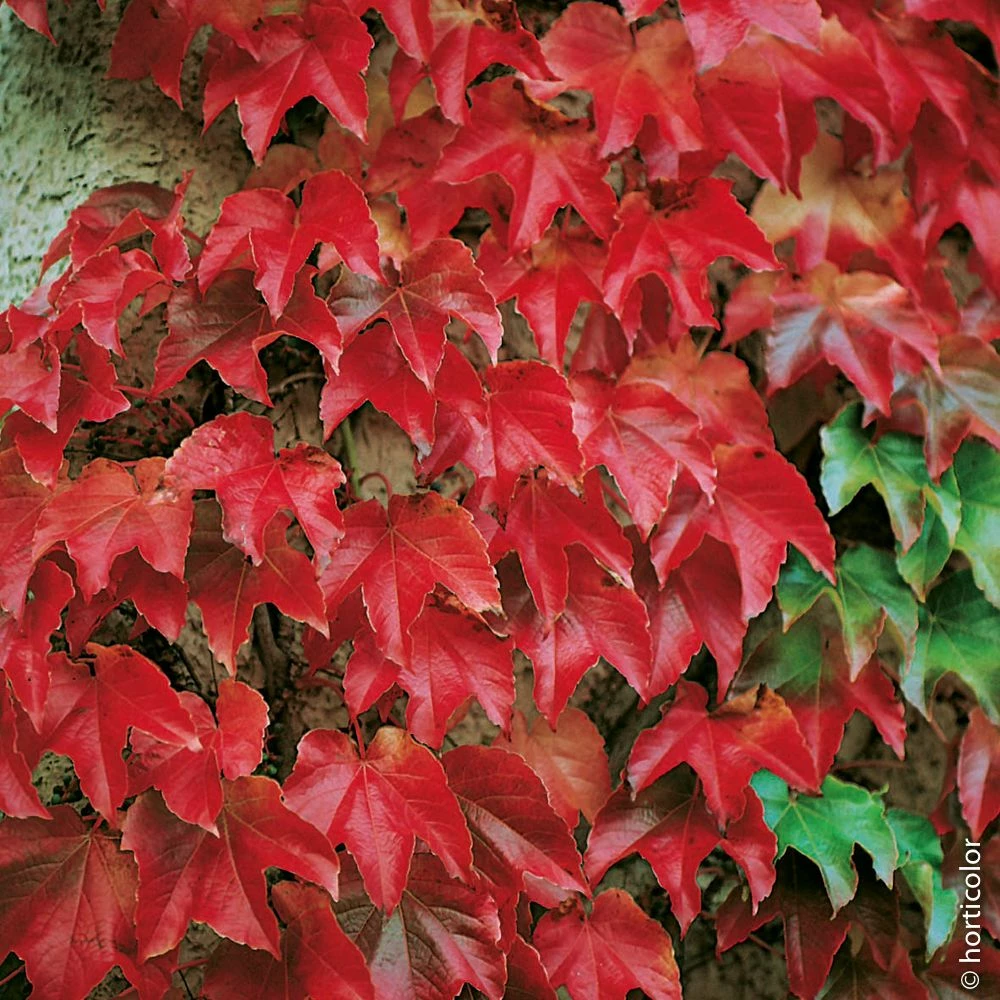 Cette vigne vierge Ampélopsis veitchii est une plante grimpante poussant très rapidement 15 à 20 m² à toutes expositions. Ses feuilles souvent composées de trois folioles au stade juvénile deviennent entières quand la plante est adulte. Caduques, elles prennent une teinte pourpre écarlate pendant tout l’automne.